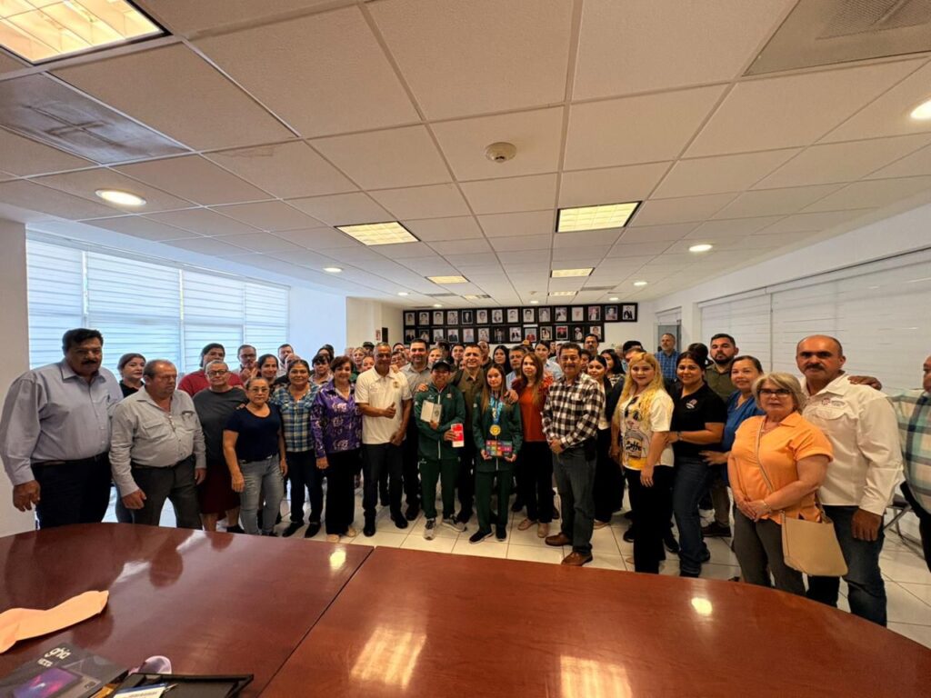 La joven angosturense fue recibida por una cadena humana conformada por los colaboradores del H. Ayuntamiento de Angostura, quienes, por instrucción del alcalde, organizaron una muestra de cariño, orgullo y reconocimiento por su esfuerzo, dedicación y valentía.