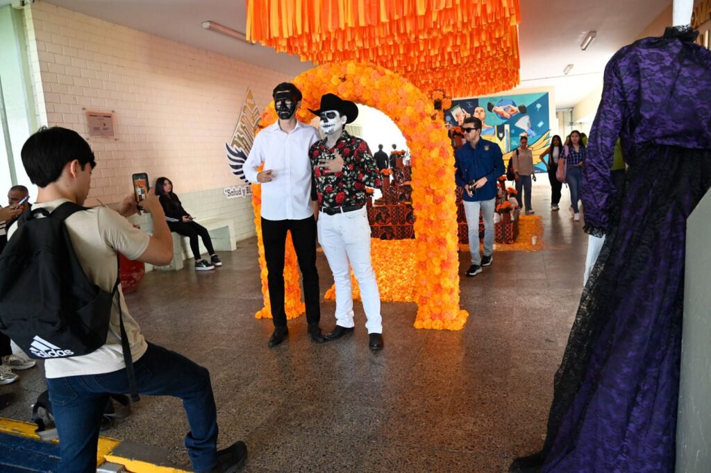 Desde temprano espacios universitarios como la Facultad de Contaduría y Administración se llenaron de flores de cempasúchil, papel picado y velas, en el que docentes, personal administrativo y estudiantes como Walter Félix participaron en la elaboración de altares y en la realización de actividades como bazares, presentaciones musicales y concursos de disfraces.
