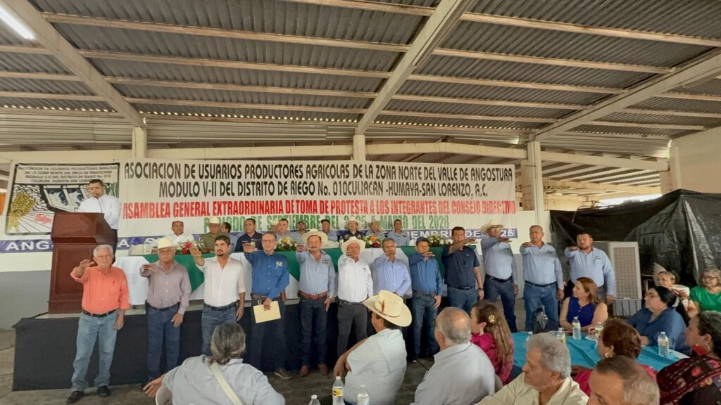 En una asamblea celebrada este viernes en las instalaciones del Módulo V-II del Distrito de Riego 010 Culiacán–Humaya–San Lorenzo A.C., el presidente constitucional de Angostura, Alberto “El Capy” Rivera tomó protesta al nuevo consejo directivo encabezado por Elías Mascareño marcando el inicio de una etapa donde se busca rescatar y fortalecer al sector agrícola de la región.