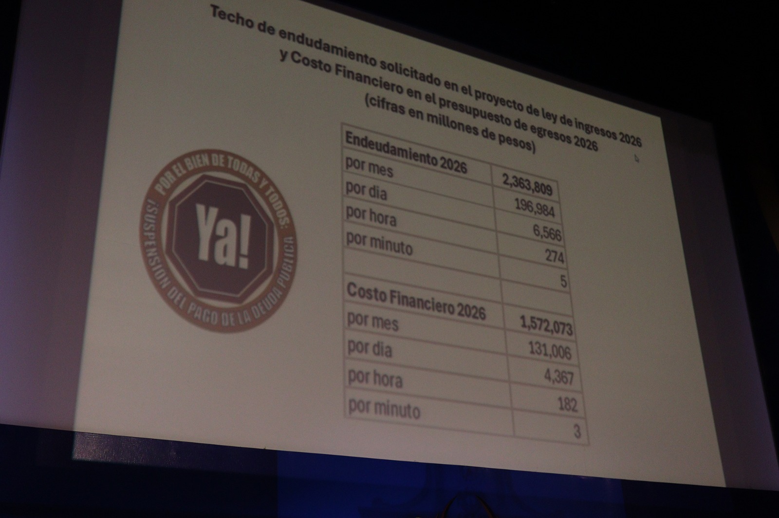 Los ponentes del foro fueron Mónica Soto Elizaga y Bernabé Enríquez Monroy, cofundadores de la promotora por la suspensión del pago de la deuda pública; en ese tenor, Soto Elizaga explicó los objetivos del encuentro y algunas de las alternativas planteadas para atender la problemática.