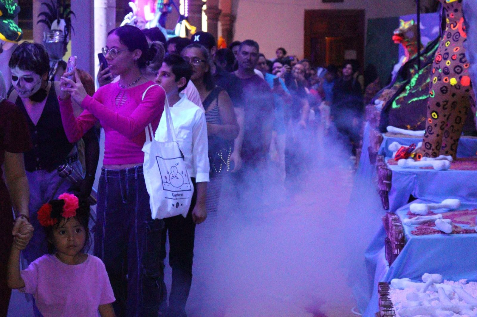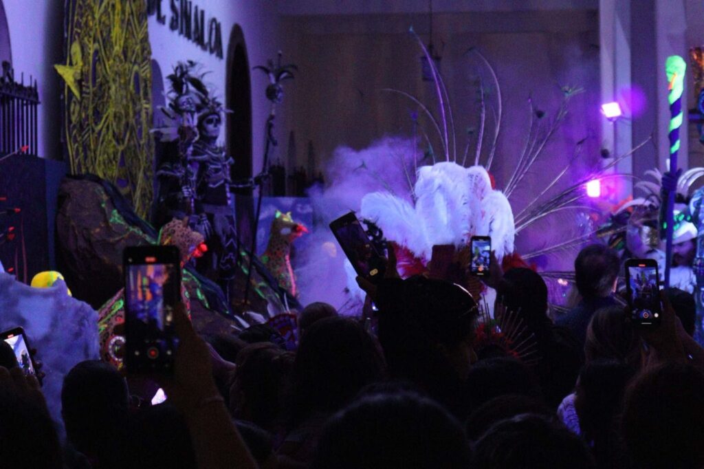 El evento inició con la participación del Coro Universitario de la Facultad de Artes y del Coro Infantil y Juvenil de la Casa de la Cultura UAS, quienes interpretaron melodías tradicionales como La Guelaguetza, Cielito lindo y La Martiniana, preparando el ambiente para el recorrido del público hacia el altar monumental.
