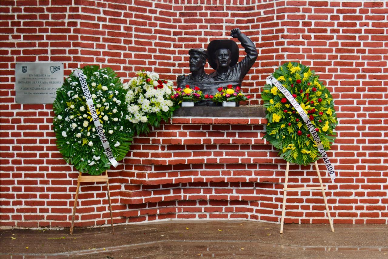 Como parte de la ceremonia, se realizó la colocación de una ofrenda floral en memoria de Rosario Uzárraga Orduño y Alejo Uzárraga Atondo, reafirmando el compromiso de seguir honrando a quienes dejaron una huella permanente en la vida social de Salvador Alvarado y son ejemplo para las nuevas generaciones.