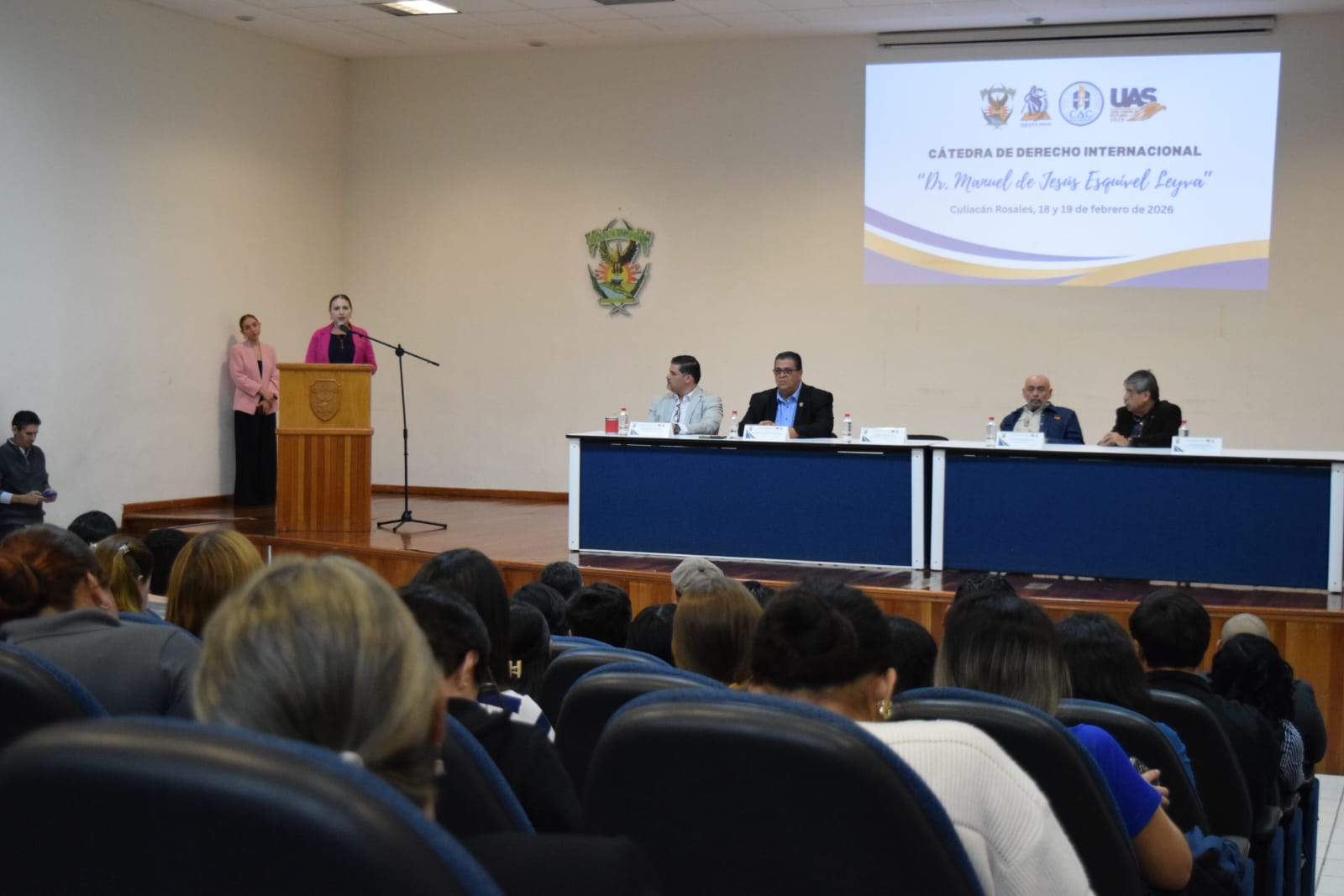 A la inauguración asistió la Secretaria General de la institución, la doctora Nidia Yuniba Brun Corona, en representación del rector, el doctor Jesús Madueña Molina. Durante el evento, se destacó que esta labor académica enarbola la formación y especialización en herramientas jurídicas para resolver controversias internacionales, integrando el enfoque práctico y los valores éticos plasmados en el Modelo Educativo UAS 2022.