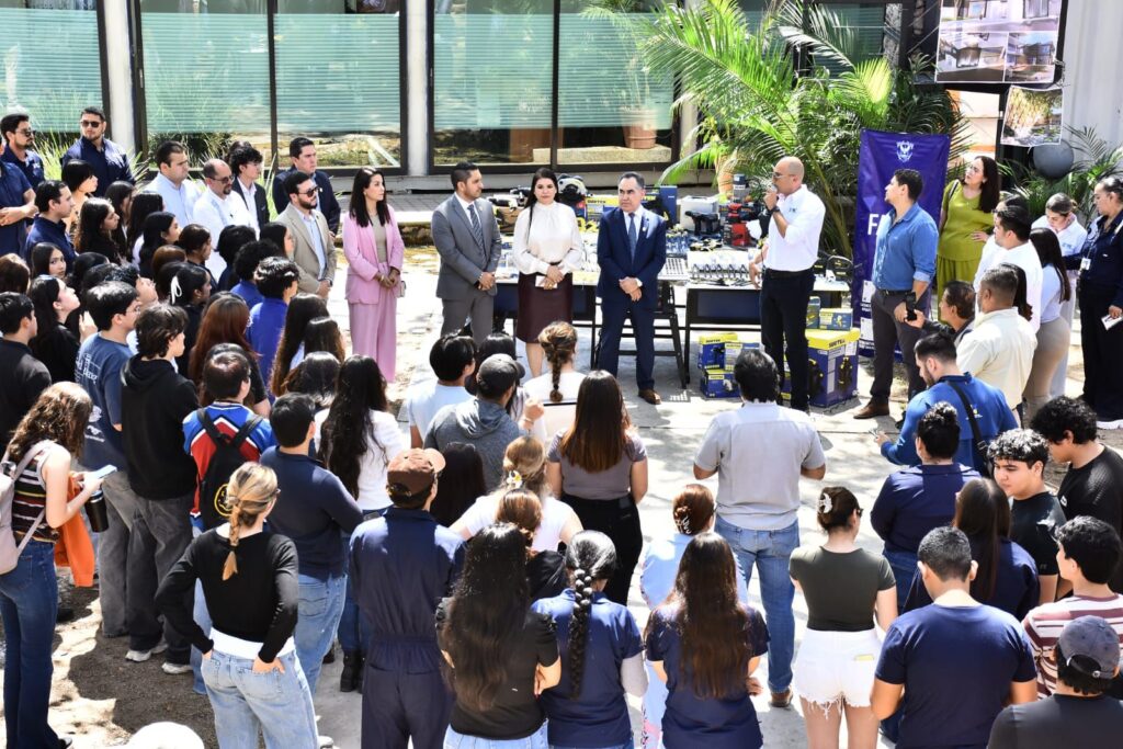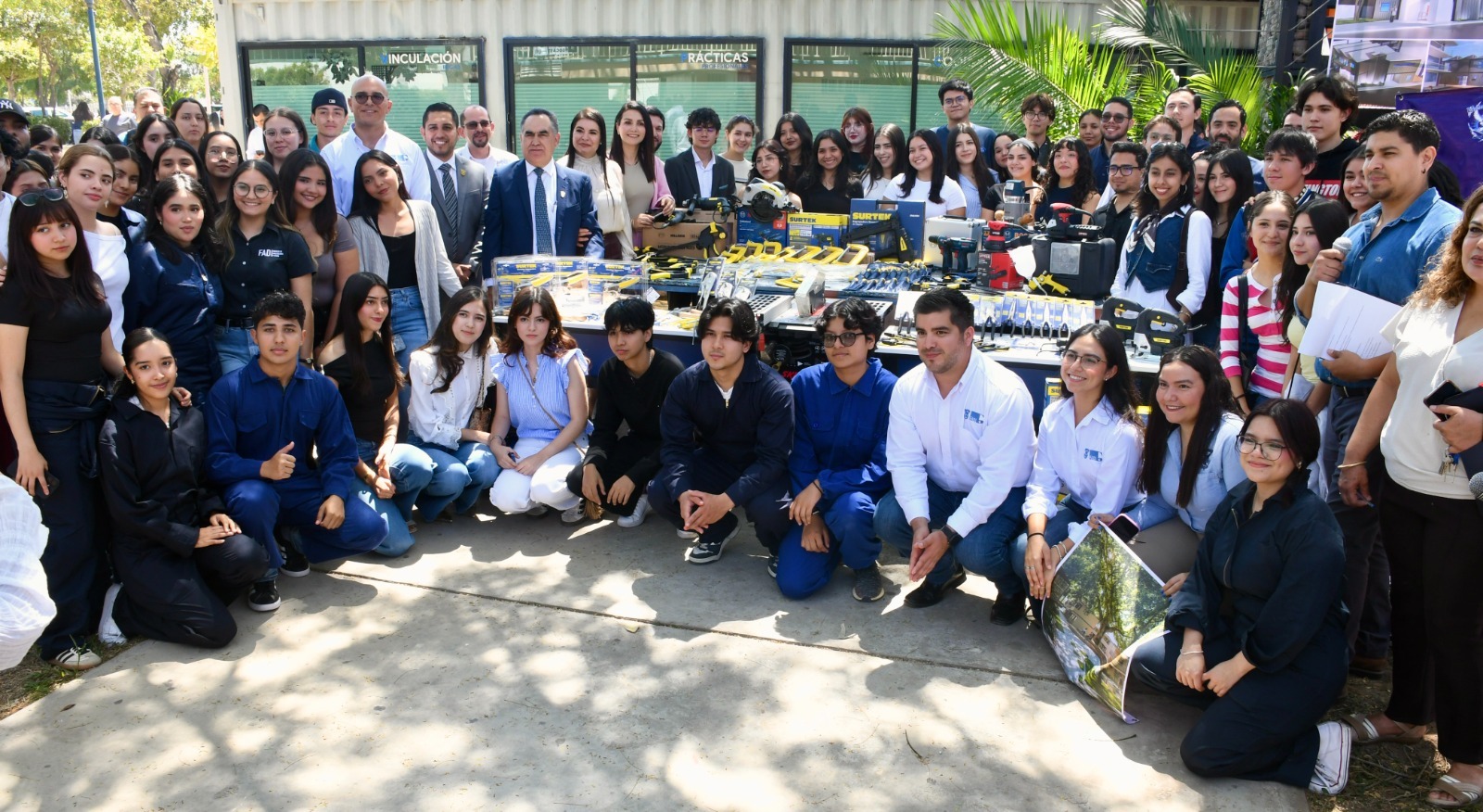 Estudiantes de la Facultad de Arquitectura y Diseño (FADI) de Mazatlán recibieron, por parte del rector de la Universidad Autónoma de Sinaloa, el doctor Jesús Madueña Molina, y de la doctora Sofía Angulo Olivas, directora de la Unidad de Bienestar Universitario (UBU), equipo y material destinado a fortalecer las actividades académicas de la Licenciatura en Diseño Industrial.