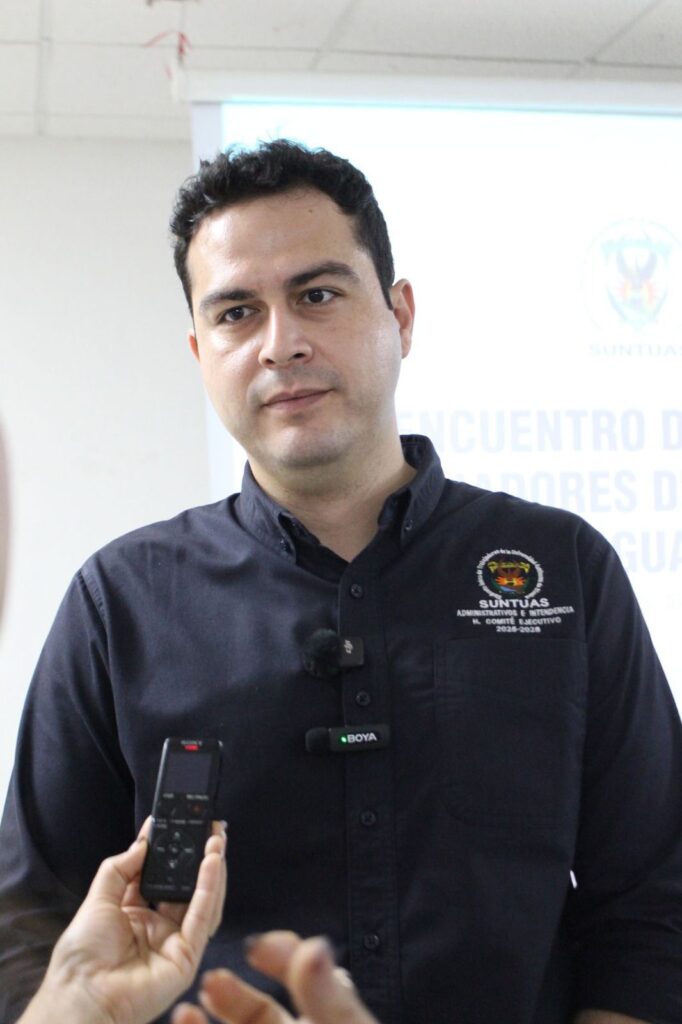 Señaló que a diferencia de la relación de apertura y diálogo que mantiene el SUNTUAS con las autoridades de la institución, en el contexto actual, el Sindicato de Trabajadores de la Universidad San Carlos vive un contexto de persecución en contra del movimiento sindical y de los directivos del gremio, lo que los ha llevado a interponer quejas ante la OIT.