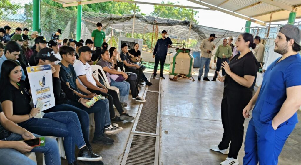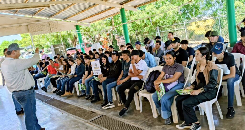 Angostura, Sinaloa, 21 de octubre de 2025. En el marco de las acciones de vinculación académica y formación práctica que impulsa la Facultad de Ciencias Económicas, Administrativas y Tecnológicas (FCEAT) de la Universidad Autónoma de Sinaloa (UAS), estudiantes de la Licenciatura en Negocios Agrotecnológicos participaron en una jornada técnica en la Junta de Sanidad Vegetal del Valle del Évora, con el propósito de conocer y apropiarse de los diferentes procesos de producción de microorganismos e insectos benéficos, la elaboración de lixiviados y fertilizantes orgánicos, así como el uso de tecnologías aplicadas a la sanidad agrícola dentro de la jornada universitaria del conocimiento 2025.