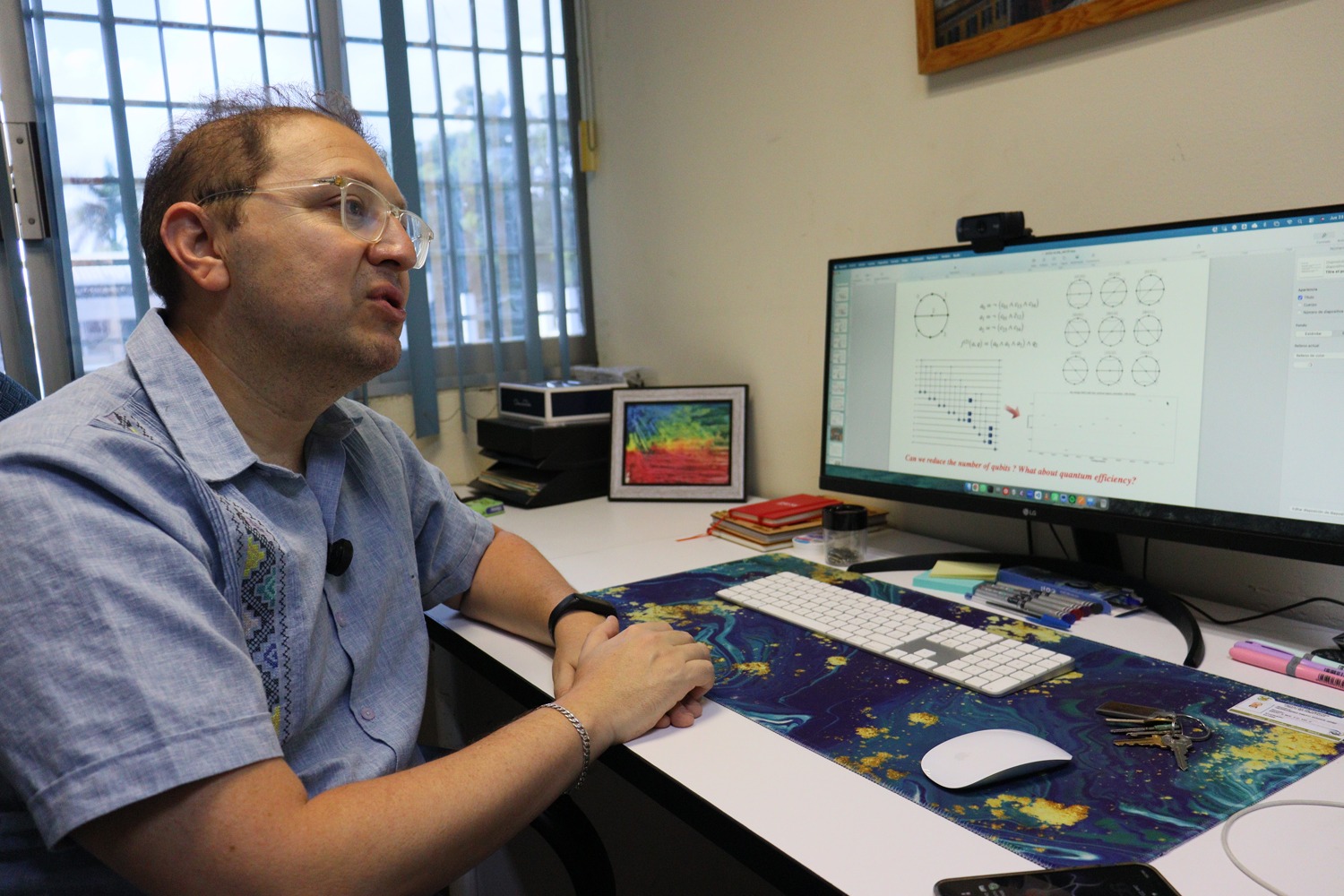 Hernández Pinto dio a conocer que, actualmente, su grupo de trabajo explora la aplicación de algoritmos cuánticos, los cuales se fundamentan en los principios de superposición y probabilidad propios de la física cuántica. “En la computación clásica uno sabe si el electrón pasa o no por una compuerta; en la cuántica, en cambio, todo depende de la probabilidad y del momento en que se mida”, explicó.