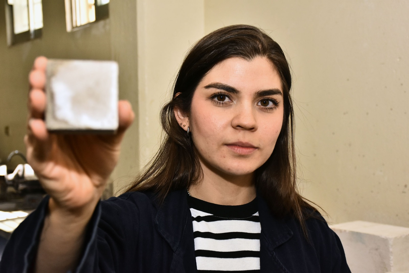 En ese sentido, señaló que su proyecto de investigación se enfoca en el desarrollo de productos cementantes alternativos que sustituyan parcialmente al cemento convencional, integrando materiales como el metacaolín y la zeolita. Explicó que el objetivo principal es disminuir el impacto ambiental de la industria de la construcción sin comprometer las propiedades mecánicas de los materiales utilizados.