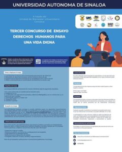 En el marco del Día Internacional de los Derechos Humanos (DDHH), la Universidad Autónoma de Sinaloa (UAS), a través de la Unidad de Bienestar Universitario (UBU), lanzó la convocatoria al Tercer Concurso de Ensayos “Derechos Humanos para una vida digna” e invitó a participar en la campaña “Reconocer los Derechos Humanos, es reconocernos humanos” con propuestas de actividades y proyectos.
