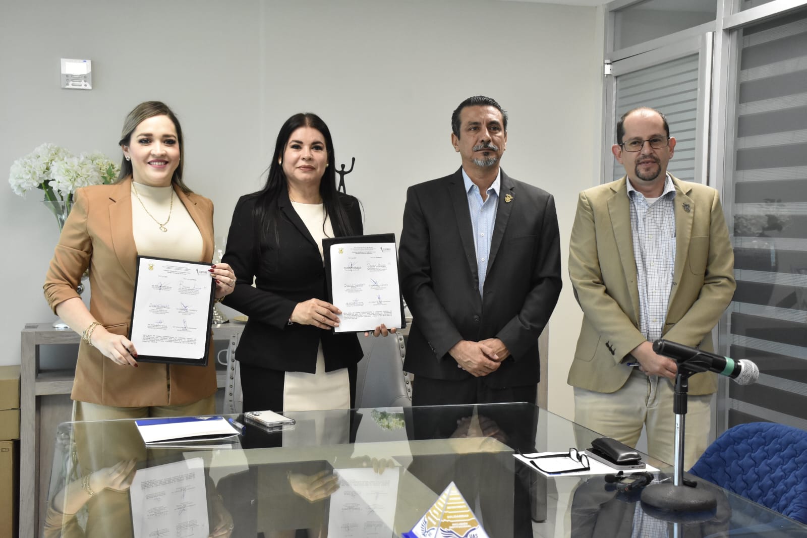 En representación del Rector, doctor Jesús Madueña Molina, asistió el Vicerrector de la Unidad Regional Centro, doctor Wenseslao Plata Rocha, y la directora de Bienestar Universitario, doctora Sofía Angulo de Madueña agradeció la disposición de la COEPRIS por la firma del documento, por participar y colaborar en tareas conjuntas con beneficios mutuos para ambas instituciones.