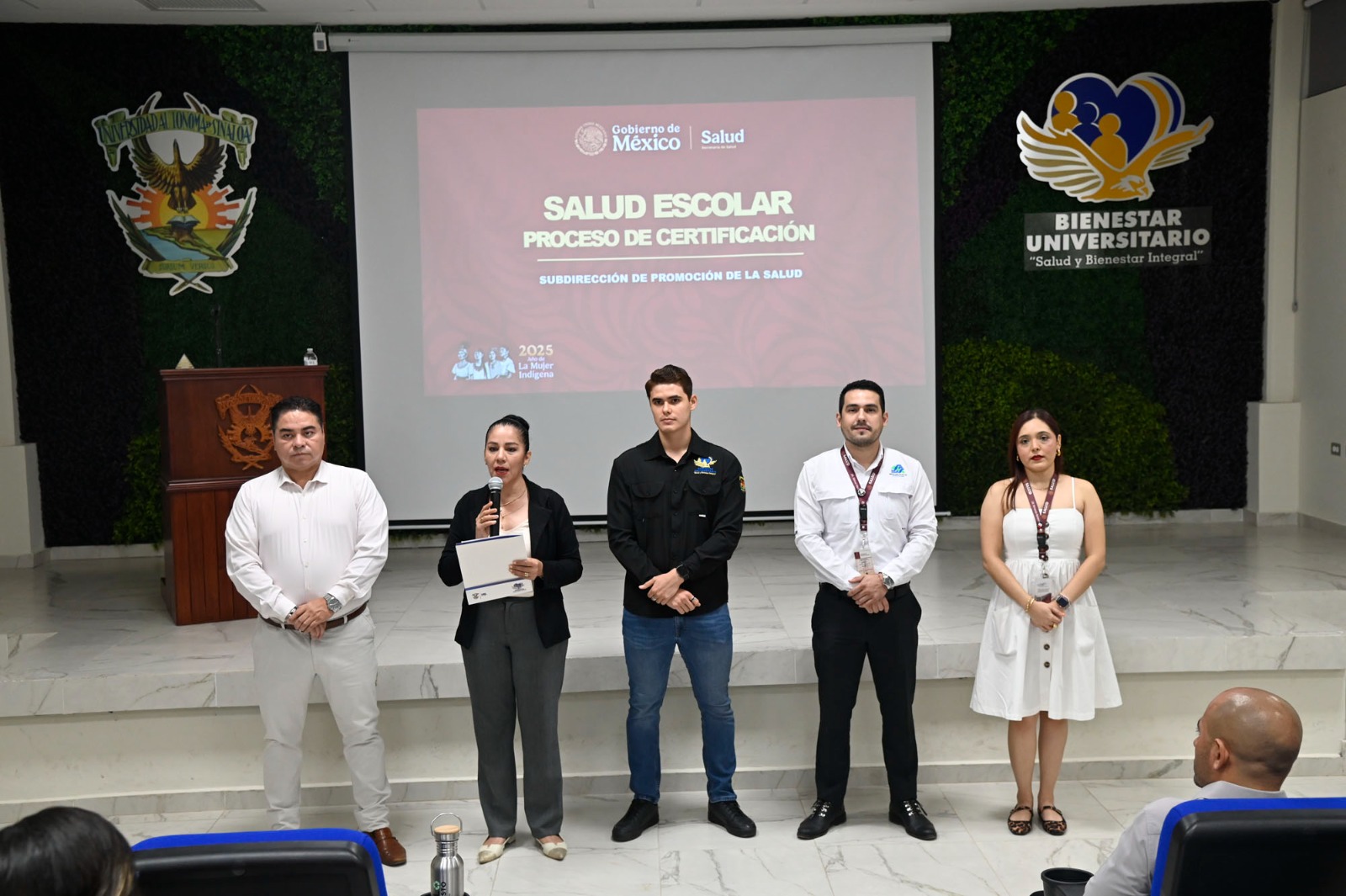 Por su parte, el doctor Manuel Alejandro Macias Mancillas, jefe del Departamento Nueva Cultura de la Salud de la Secretaría de Salud del Estado, señaló que, en pláticas con la directora de la UBU, doctora Sofía Angulo de Madueña, el director y la subdirectora de Prevención de la Salud, el doctor Kenny Inzunza y la licenciada Denisse Hernández, se acordó dar cavidad a la certificación mediante la capacitación de sus lineamientos para promover hábitos saludables en las escuelas.
