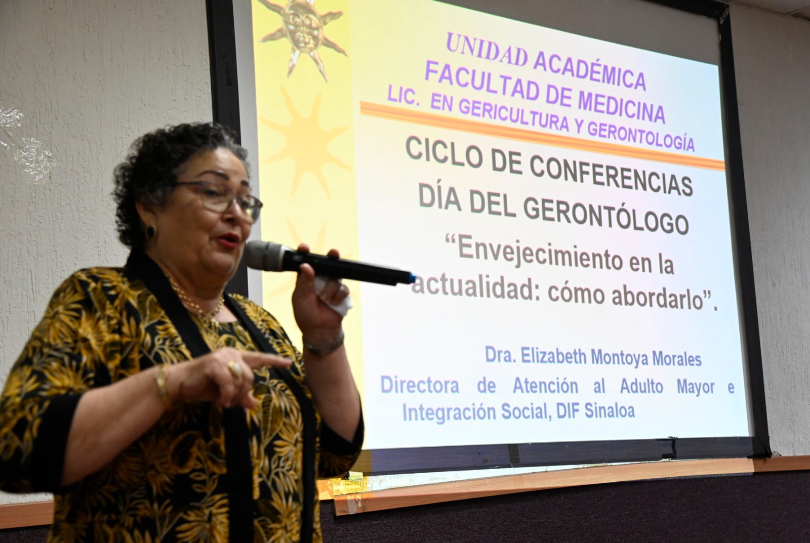Este lunes 1° de septiembre, la Facultad de Medicina de la Universidad Autónoma de Sinaloa (UAS) celebró el Día Nacional del Gerontólogo con un ciclo de conferencias dirigido a estudiantes de la licenciatura en Gerontología y Gericultura.
