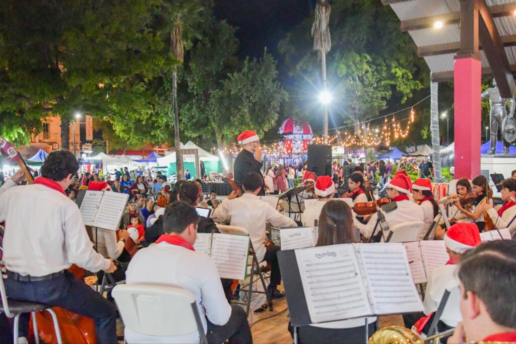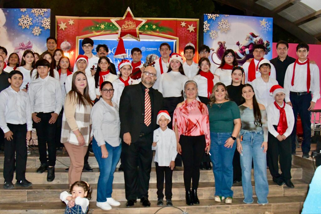 🎶✨La Plazuela Municipal Pedro Infante se llenó de música, talento y espíritu navideño con la presentación de la Orquesta Sinfónica Juvenil de Salvador Alvarado, bajo la dirección del maestro Raúl Pérez.