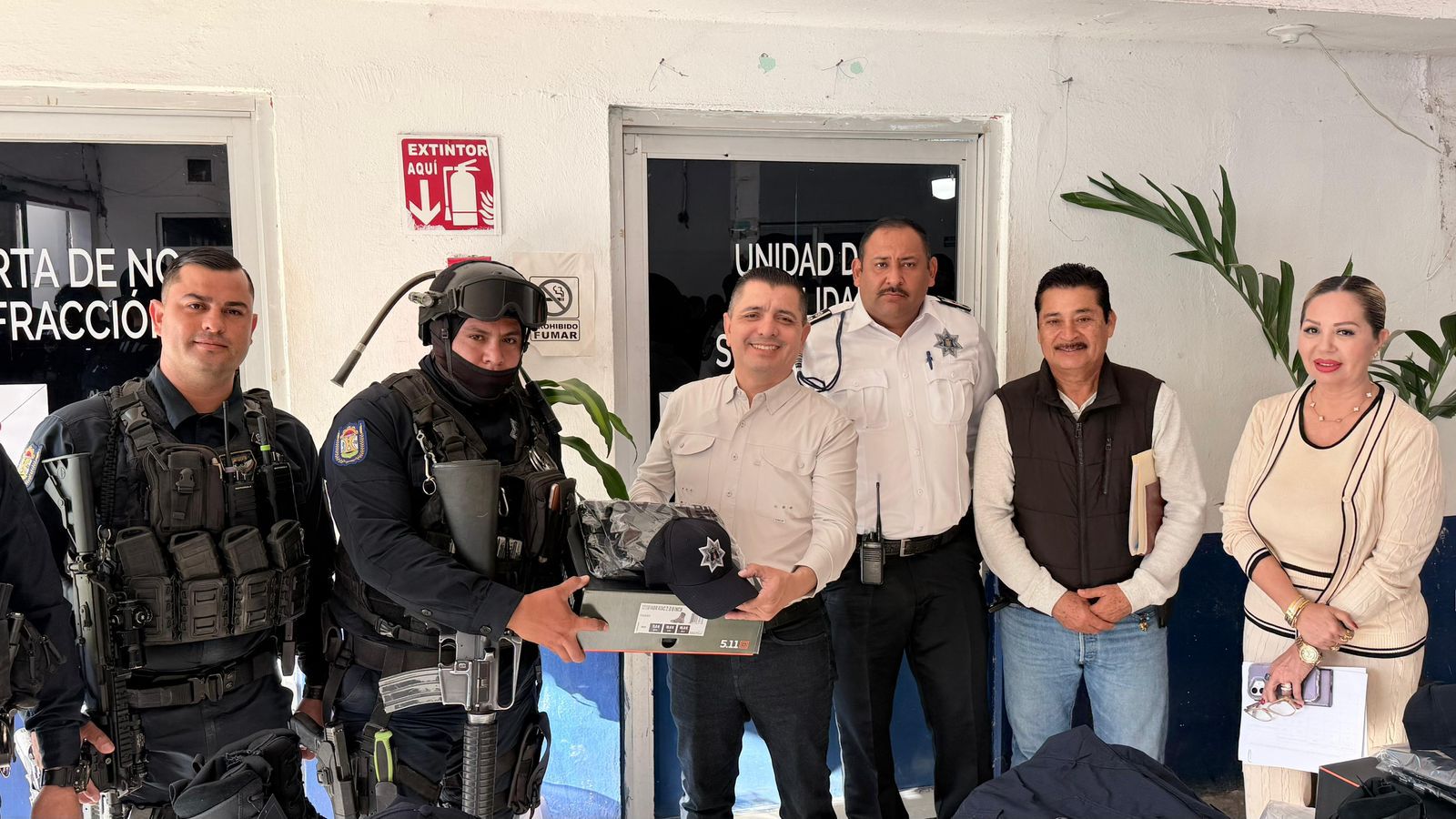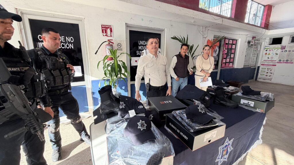 La entrega consistió en uniformes completos que incluyen botas, gorra, pantalón y camisa, lo que permitirá a los elementos contar con equipamiento digno y adecuado para el cumplimiento de su deber.