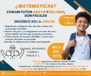 “Se asigna un tutor que es alumno de alguna universidad prestigiosa, como la UNAM, el Tec de Monterrey o la UVM. Como ya se mencionó, la modalidad es completamente en línea y el tutor se asigna de forma personalizada o, a lo mucho, para dos alumnos”, explicó Vizcarra Ortiz.
