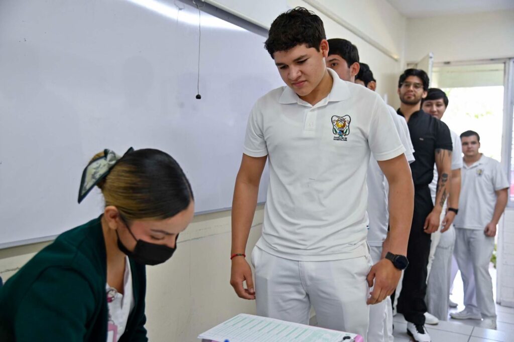 “Doy las gracias a Bienestar Universitario y al IMSS por venir a vacunar contra el sarampión, la rubéola, la influenza y el COVID-19. Es fundamental que los muchachos estén protegidos contra estas enfermedades, ya que para nosotros es de vital importancia; contamos con clínicas donde nuestros alumnos tratan a pacientes y este tipo de acciones representan prevención directa”, señaló el director.