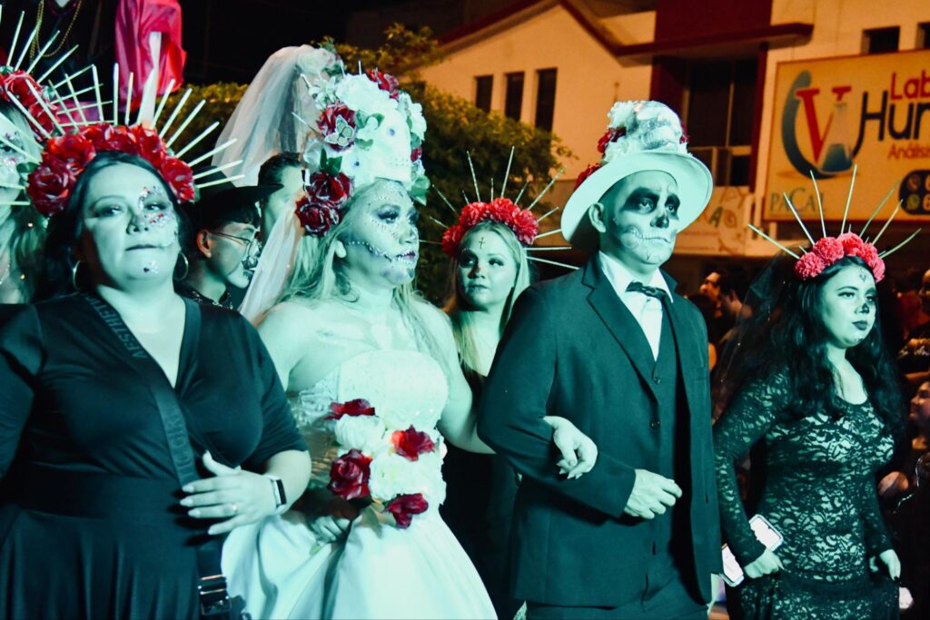 Entre luces, música y aplausos, el público pudo admirar un desfile donde catrinas, catrines, calaveras y ofrendas multicolores dieron vida a una noche que combinó la belleza de la tradición con el arte y el talento de la población.