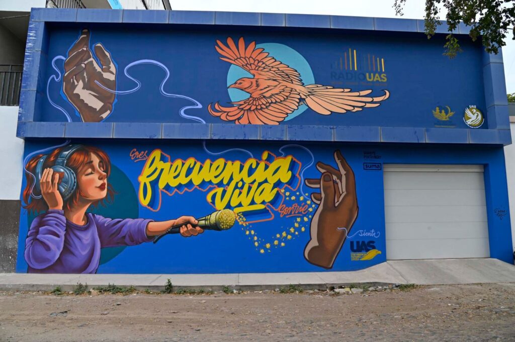 Como resultado de un esfuerzo conjunto entre Radio UAS, la Unidad de Bienestar Universitario (UBU) y SUMA Sociedad Unida I.A.P., se presentó el mural “Frecuencia Viva” en las instalaciones de la radiodifusora universitaria. Esta obra promueve la cultura de paz y se integra al proyecto “Vamos Pintando”, una iniciativa de “Murales por la Paz” que alcanza ya los 57 murales dentro de este programa.